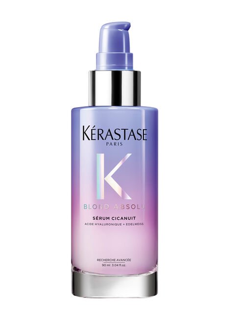 Sérum restaurador nocturno. Ideal para todo tipo de cabello rubio, este suero en gel sin enjuague, hidrata profundamente y restaura la fibra decolorada durante la noche, para un cabello rubio más suave y saludable a la mañana siguiente. Recupera intensamente el cabello al eliminar el 55% del daño de la decoloración para obtener mechones más fuertes y resistentes. La mayor concentración de ácido hialurónico combinada con la flor de Edelweiss rellena instantáneamente, reduce la rotura y sella las puntas abiertas. ¡Despierta y siente tu cabello rubio suave!