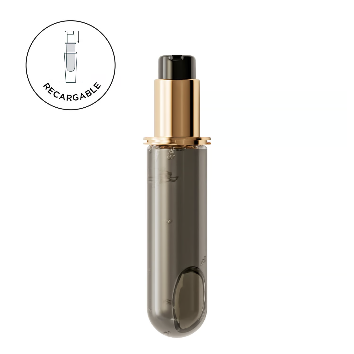 La botella de recarga está hecha de al menos un 95% de plástico reciclado*. La botella exterior está hecha de al menos un 30% de vidrio reciclado**. Diseñada para durar, esta botella se puede recargar continuamente***.