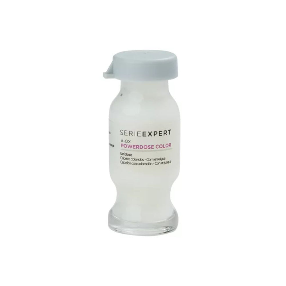 Tratamiento con doble protección color. Actúa en sinergia con las coloraciones. El complemento ideal tras una coloración, el nuevo powerdose color ofrece un tratamiento completo de la fibra para un resultado color óptimo y unos cabellos protegidos durante largo tiempo. – El loneno G tiene la propiedad de fijarse en el cabello para limitar la sensibilización de la fibra. – El Incell refuerza el cemento intercelular, la barrera protectora de la fibra para ayudar a retener mejor los pigmentos. – El polímero protector limita la sensibilidad de la fibra frente al agua; ésta es repelida. La fibra está doblemente protegida, el agua es repelida en la superficie del cabello, el color está protegido durante largo tiempo.