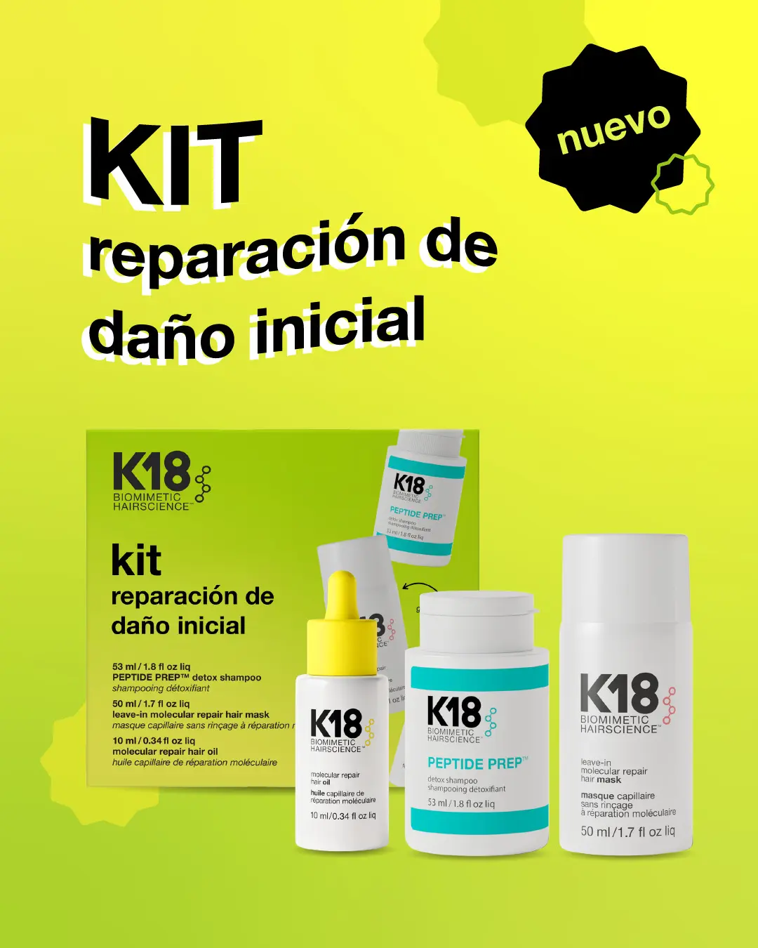 El shampoo detox PEPTIDE PREP™ (53 ml) elimina la suciedad, aceites, metales y acumulación de producto para obtener los máximos resultados de reparación molecular.Nuestro bestseller, la máscara de reparación molecular (50 ml) revierte el daño en 4 minutos.El aceite de reparación molecular (10 ml) combate el frizz desde el interior para un control inmediato + a largo plazo