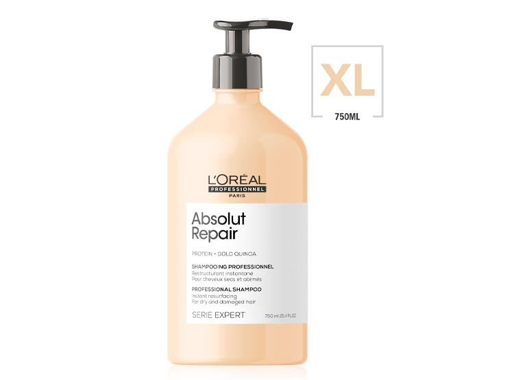 L’Oréal Professionnel Série Expert Absolut Repair Shampoo es un champú rejuvenecedor que trabajará tanto en el tallo del cabello como en la superficie del cabello para devolverle la vida al cabello dañado.